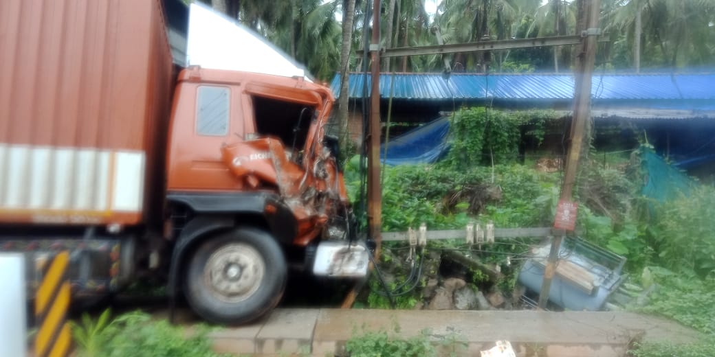 ദേ​ശീ​യപാ​ത പ​ന​യം​പാ​ട​ത്ത് വീ​ണ്ടും അ​പ​ക​ടം. നിയന്ത്രണം നഷ്ടപെട്ട് ലോറി ഇലക്ട്രിക് പോസ്റ്റിലേക്ക് അ ഇടിച്ചുകയറുകയായിരുന്നു
