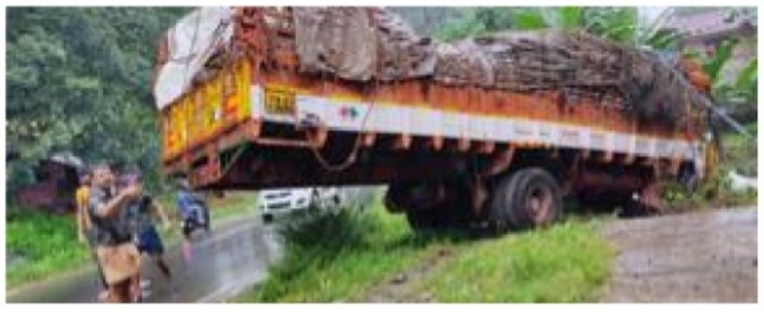 പോ​ത്തു​ക​ളു​മാ​യി വ​ന്ന ലോ​റി മ​റി​ഞ്ഞു, ര​ണ്ടു പോ​ത്തു​ക​ൾ ച​ത്തു.