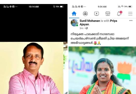 ‘പാലക്കാട് മുൻസിപ്പൽ വൈസ് ചെയർമാനായി ഇ കൃഷ്ണദാസ് (നായർ സമുദായം) ചെയർപേഴ്സൺ ആയി പ്രിയ അജയൻ (മൂത്താൻ സമുദായം) എന്നിവർക്ക് എല്ലാവിധ ആശംസകളും നേരുന്നു’വെന്നാണ് പോസ്റ്റ്.