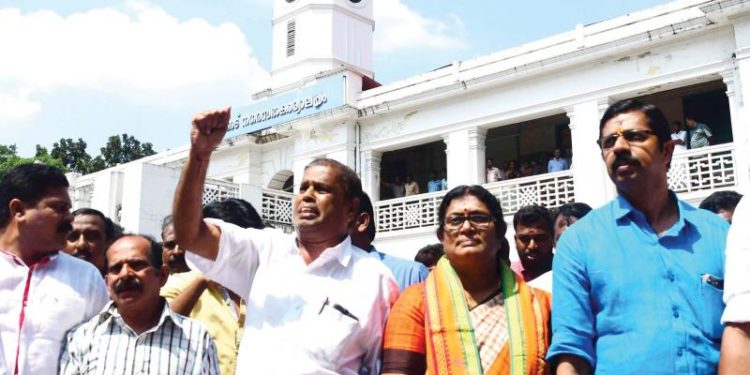 കൗണ്സിലര്മാരായ എസ്ആര് ബാലസുബ്രഹ്മണ്യന്, മധു സുനില് എന്നിവരെ അവഗണിച്ചതിനെ തുടര്ന്നാണ് സൊസൈറ്റിയുടെ പ്രതിഷേധം.