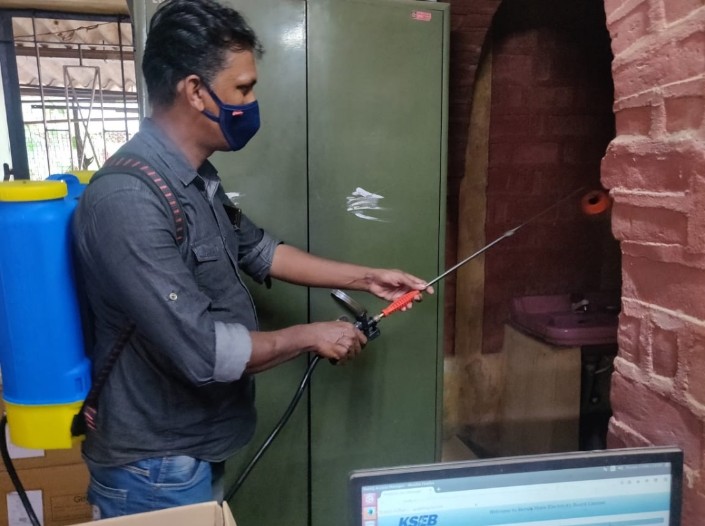 കെ എസ് ഇ ബി മലമ്പുഴ സെക്ഷൻ ഓഫീസും പരിസരവും എ ഐ വൈ എഫ് പ്രവർത്തകർ അണുനശീകരണം നടത്തി