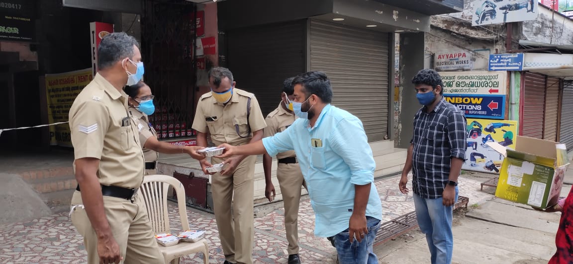 Photo Caption:പെരുന്നാൾ ദിനത്തിൽ പാലക്കാട് നഗരത്തിൽ കോവിഡ് ഡ്യൂട്ടി ചെയ്യുന്ന പോലീസുദ്യോഗസ്ഥർക്ക് ഫ്രറ്റേണിറ്റി കോവിഡ് കൺട്രോൾ റൂം വളണ്ടിയർമാർ ബിരിയാണി നൽകുന്നു.