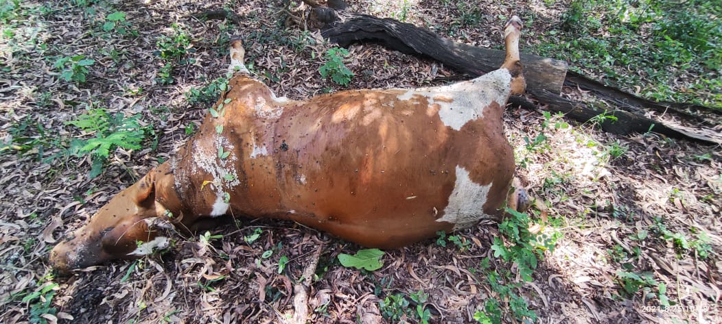 കഴിഞ്ഞ ദിവസം മേയാൻ വിട്ട പശുവാണ് വെടിയേറ്റ് ചത്തത്. പശുവിനായി തിരച്ചിൽ നടത്തിയപ്പോഴാണ് പറമ്പിൽ വെടിയേറ്റ് ചത്ത് കിടക്കുന്നത് ശ്രദ്ധയിൽ പെട്ടത്. ചേമ്പന ഭാഗത്ത് താമസിക്കുന്ന മാണിക്കാന്റെ പശുവാണ് ചത്തത്. നായട്ട് സംഘങ്ങൾ വെടിവെച്ചതായി സംശയിക്കുന്നതായി മാണിക്കൻ പറഞ്ഞു