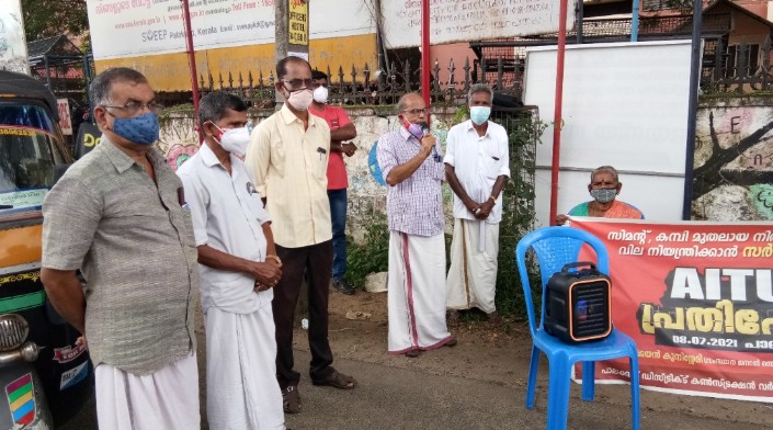 പാലക്കാട്: സിമൻ്റ്’ കമ്പി; തുടങ്ങിയ നിർമ്മാണ സാമഗ്രഹികളുടെ വില നിയന്ത്രിക്കണമെന്നാവശ്യപ്പെട്ടുകൊണ്ട് പാലക്കാട് ഡിസ്ട്രിക്ക്കൺ സ്ട്രക്ക് ഷൻ വർക്കേഴ് – യൂണിയൻ (എ.ഐ.ടി.യു.സി.) ൻ്റെ നേതൃത്വത്തിൽ കലക്ക് ടേറ്റിനു മുമ്പിൽ ധർണ്ണ നടത്തി.’ സി.പി.ഐ. ജില്ല സെക്രട്ടറി വിജയൻ കുനിശ്ശേരി ധർണ്ണ ഉദ്ഘാടനം ചെയ്തു.പി രായിരി ഭാസ്കരൻ; സുബ്രമണ്യൻ വലിയ പാടം;കെ.പ്രഭു; എം.ഹരിദാസ്, ജയചന്ദ്രൻ എന്നിവർ സംസാരിച്ചു.ഫോട്ടോ: കൺസ്ട്രക്ഷൻ വർക്കേഴ്സ് യൂണിയൻ (എ.ഐ.ടി.യു.സി.) സംഘടിപ്പിച്ച ധർണ്ണ സി.പി.ഐ. ജില്ല സെക്രട്ടറി വിജയൻ കുനിശ്ശേരി ഉദ്ഘാടനം ചെയ്യുന്നു.