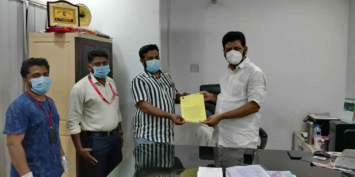 Photo Caption: ലക്ഷദ്വീപ് വിഷയത്തിൽ ഇടപെടണമെന്നും പാർലമെൻറിൽ ഉന്നയിക്കണമെന്നാവശ്യപ്പെട്ടും ഫ്രറ്റേണിറ്റി മൂവ്മെൻറ് നേതാക്കൾ വി.കെ ശ്രീകണ്ഠൻ എം.പിക്ക് നിവേദനം നൽകുന്നു.