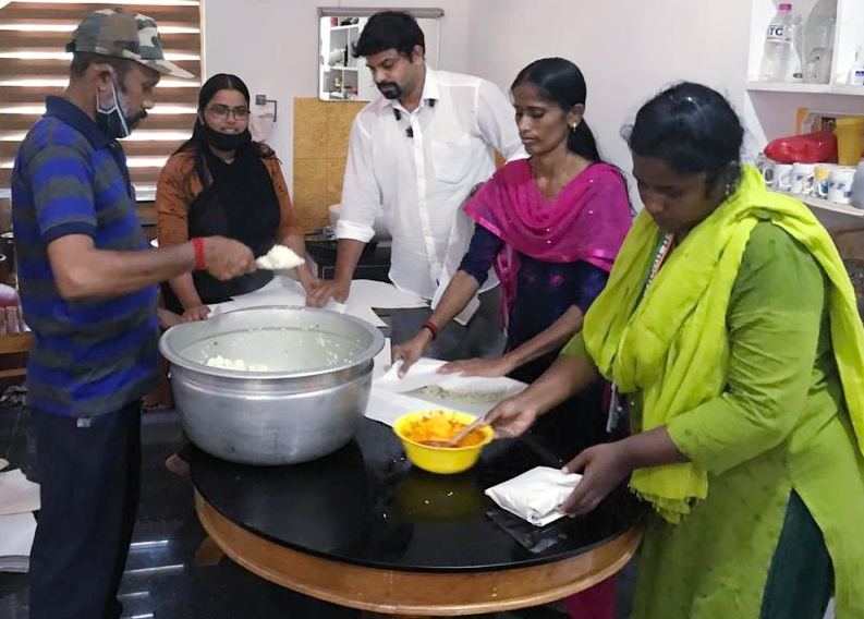 ഫോട്ടോ ..കോൺഗ്രസ്സ് പ്രവർത്തകർ ഭക്ഷണം പൊതിയുന്ന തിരക്കിൽ