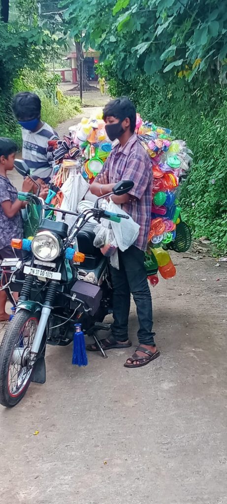 നെന്മാറ: പലവിധത്തിലുള്ള കച്ചവടവുമായി തമിഴ്ഭാഷയിൽ സംസാരിക്കുന്നവർ. ഗ്രാമപ്രദേശങ്ങളിൽ കറങ്ങി നടക്കുന്നത് മിക്കപ്പോഴും പലരും ഗൗരവമായി ശ്രദ്ധിക്കാറില്ല. കഴിഞ്ഞ ഒരാഴ്ചയ്ക്കുള്ളിൽ നെന്മാറ യുടെ വിവിധ ഭാഗങ്ങളിൽ തുടർച്ചയായി നടന്ന മോഷണശ്രമങ്ങളും, വല്ലങ്ങി ചീർമ്പക്കാവ് പള്ളിത്തെരുവിൽ പരേതനായ ബോംബെ മണി എന്നയാളുടെ ഭാര്യയുടെ മൂന്നുപവൻ്റെ സ്വർണ്ണമാല നഷ്ടപ്പെട്ടതും നാട്ടുകാരേയും, പോലീസിനേയും ജാഗരൂകരാക്കിയിരിക്കുകയാണ്. ഇന്ന് കാലത്ത് എട്ടുമണയോടടുത്തസമയത്ത് കുട്ടികളുടെ കളിപ്പാട്ടങ്ങൾ കെട്ടിത്തൂക്കിയ രണ്ട് ടുവീലറുകളിൽ വന്നെത്തിയ വ്യാപാരികൾ നാട്ടുകാരിൽ സംശയമുണർത്തുകയാണ്. ബൈക്കിൽ വന്നയാൾ മെയിൻ റോഡിൽ കാത്തുനിന്നപ്പോൾ, TN-37 DD 1075 എന്ന നമ്പറിൽ കാണപ്പെട്ട XL സൂപ്പർ ടു വീലറിൽ കച്ചവടക്കാരായി വന്ന പതിനഞ്ച് വയസ്സ് പ്രായം തോന്നിക്കുന്ന രണ്ടു കുട്ടികൾ പത്തു ഗ്രാം മുടിക്ക് പത്തുരൂപ തരുമെന്നും പറഞ്ഞ് വീടുകളിലേക്ക് കയറിച്ചെല്ലുകയാണ്. കൊച്ചുകുട്ടികളെ ആകർഷിക്കുന്ന കളിപ്പാട്ടങ്ങൾ കണ്ട് ഈ വാഹനത്തിന്റെ പുറകെ പോകുന്ന കുട്ടികളെ മിക്കപ്പോഴും വീട്ടുകാർ ശ്രദ്ധിക്കാത്തതും അപകടം ക്ഷണിച്ചു വരുത്തുന്നു. ഈ സാഹചര്യത്തിൽ പ്രായപൂർത്തിയാകാത്ത കച്ചവടക്കാരായ കുട്ടികളുടെ വാഹനം പരിശോധനയ്ക്ക് വിധേയമാക്കി നടപടി സ്വീകരിക്കണ്ടിയിരിക്കുന്നു. ഭീതിയോടെ ജീവിക്കുന്ന ഏവർക്കും സാന്ത്വനമായി നിയമപാലകർ രംഗത്തിറങ്ങിയിട്ടും, മിക്കയിടങ്ങളിലും ഇത്തരം കച്ചവടക്കാർ തമ്പടിച്ചിരിക്കുന്നത് പൊതുജനങ്ങളിൽ ആശങ്ക സൃഷ്ടിക്കുകയാണ്. കച്ചവടക്കാരായ ഈ കുട്ടികളുടെ പേരുകൾ മഹേഷ് , സന്തോഷ് എന്നിങ്ങനെയാണെന്നാണ് പറഞ്ഞത്. ആകെ പതിനഞ്ചു പേർ നെന്മാറയിൽ താമസിക്കുന്നുണ്ടെന്നു പറയുന്നു. വാഹനത്തിൽ ഉച്ചഭാഷിണി ഘടിപ്പിച്ച് മുടി കൊടുക്കുവാനുണ്ടോ എന്നന്വേഷിച്ചാണ് ഇവർ വന്നിരുന്നത്.