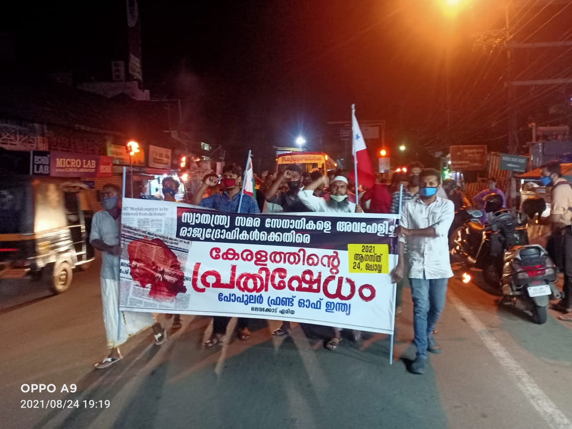 പാലക്കാട്.1921 മലബാർ സമര പോരാളികളുടെ പേരുകൾ സ്വാതന്ത്ര്യ സമര രക്ത സാക്ഷികളുടെ പട്ടികയിൽ നിന്ന് ഒഴിവാക്കാനുള്ള കേന്ദ്ര സർക്കാർ നീക്കത്തിനെതിരെ പോപുലർ ഫ്രണ്ട് ഓഫ് ഇന്ത്യ ഒലവക്കോട് ഏരിയ