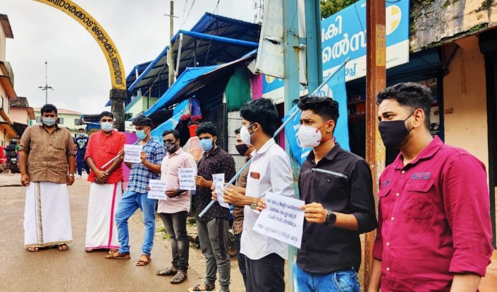 മണ്ണാര്‍ക്കാട്: കോവിഡാനന്തര ചികിൽസക്ക് സർക്കാർ ആശുപത്രികളിൽ പണം ഈടാക്കാനുള്ള തീരുമാനം പിൻവലിക്കുക,വിദ്യാർത്ഥികൾക്ക് വാക്സിൻ അനുവദിക്കുക എന്നീ ആവശ്യങ്ങള്‍ ഉന്നയിച്ച് കെ.എസ്.യു മണ്ണാർക്കാട് മുൻസിപ്പൽ കമ്മിറ്റിയുടെ നേതൃത്വത്തിൽ താലൂക്ക് സർക്കാർ ആശുപത്രിക്ക് മുൻപിൽ നിൽപ്പ് സമരം സംഘടിപ്പിച്ചു.കെ.എസ്.യു മണ്ണാർക്കാട് മുൻസിപ്പൽ പ്രസിഡണ്ട് ആസിഫ് അലി അധ്യക്ഷത വഹിച്ചു.ബ്ലോക്ക് കോണ്‍ഗ്രസ് ജനറല്‍ സെക്രട്ടറി ഷിഹാബ് കുന്നത്ത് സമരം ഉദ്ഘാടനം ചെയ്തു.യൂത്ത് കോൺഗ്രസ് മണ്ണാർക്കാട് നിയോജക മണ്ഡലം പ്രസിഡണ്ട് ഗിരീഷ് ഗുപ്ത മുഖ്യപ്രഭാഷണം നടത്തി.കെ.എസ്‌.യു മണ്ണാർക്കാട് നിയോജക മണ്ഡലം കമ്മിറ്റി വൈസ് പ്രസിഡൻറ് ജിയാന്റോ ജോൺ,ഹസീബ്,ഷബീർ,ഷനൂബ്,അജി,ഹർഷാദ് തുടങ്ങിയവർ പങ്കെടുത്തു.