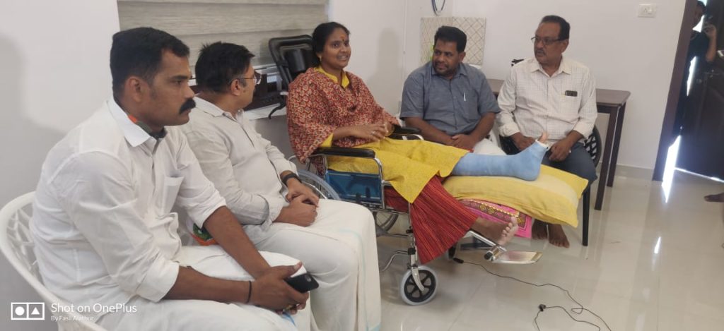 പാലക്കാട്: വീഴ്ചയിൽ പരിക്കേറ്റ് കണ്ണന്നൂരിലെ വസതിയിൽ കഴിയുന്ന രമ്യ ഹരിദാസ് എം.പിയെ വെൽഫെയർ പാർട്ടി ദേശീയ സെക്രട്ടറി റസാഖ് പാലേരി സന്ദർശിച്ചു.ജില്ല ട്രഷറർ എ. ഉസ്മാൻ, ആലത്തൂർ മണ്ഡലം പ്രസിഡൻറ് ശരീഫ് പള്ളത്ത് എന്നിവരുമുണ്ടായിരുന്നു.