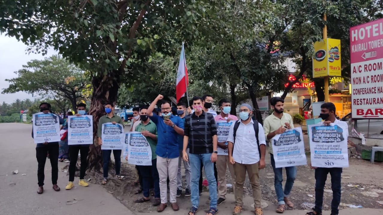 എന്ന വിഷയം ഉന്നയിച് കൊണ്ട് Sio പാലക്കാട് ജില്ലാ കമ്മിറ്റി പാലക്കാട് നടത്തിയ പ്രധിഷേധ ചത്വരം Sio സംസ്ഥാന സമിതി അംഗം സൽമാനുൽ ഫാരിസ് ഉദ്ഘാടനം ചെയ്തു. ജില്ലാ പ്രസിഡണ്ട് നബീൽ ഇസ്ഹാഖ് , സെക്രട്ടറിമാരായ ബാസിത്ത്, ന ബിൽ, മൻസൂർ , സമദ് എന്നിവർ നേതൃത്വം നൽകി.