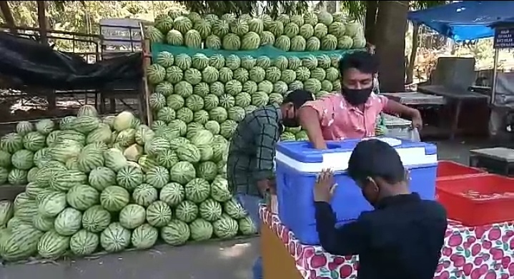 ബൈറ്റ് 4 തണ്ണി മത്തൻ കച്ചവടക്കാരൻ കൊഴിഞ്ഞാമ്പാറ സ്വദേശി താജുദ്ദീൻ. (ഏഴു വർഷമായി കച്ചവടം നടത്തുന്നു.തമിഴ്നാട്ടിലെ ദണ്ഡിവ നത്താൽ നിന്നും കിലോക്ക് 20 രൂപ നിരക്കിലാണ് കൊണ്ടുവരുന്നത്.ലോറിവാടക ഒരു ലോഡിനു് ഇരുപത്തി മുവ്വാ യി ര ത്തി അഞ്ഞൂറു രൂപ വരും’ കിലോക്ക് മുപ്പത് രൂപക്കാണു വിൽക്കുന്നത്. ദിനംപ്രതി അഞ്ഞൂറു കിലോക്കൂമുകളിൽ വിൽപന നടക്കും.)