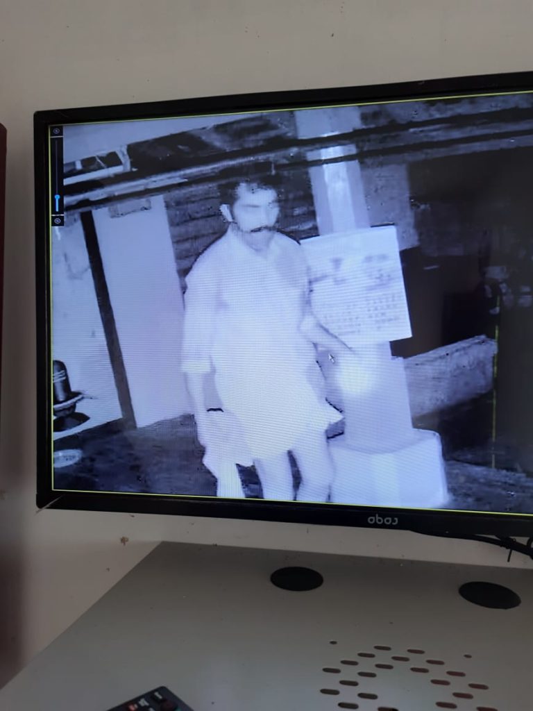 ക്ഷേത്രഭാരവാഹികളിൽ നിന്നും പരാതിലഭിച്ചതിനെതുടർന്ന് നെന്മാറ പോലീസ്,. ക്ഷേത്രത്തിലെത്തുകയും., കള്ളൻ കേടുപാടുകൾ വരുത്തിയ സ്റ്റോർറൂമിൻ്റെ വാതിലും, സ്റ്റീൽഅലമാരയും, മറ്റു സാധനങ്ങളും CCTV ദൃശ്യങ്ങളും പരിശോധിച്ചു. അന്വേഷണം ഊർജ്ജിതമാക്കി. പോലീസ് നടത്തിയ പരിശോധനയിൽ 2021 ജൂലൈ 26ന് തിങ്കളാഴ്ച രാത്രി 11മണിക്കാണ് മോഷണം നടന്നതെന്ന് Cctv ദൃശ്യങ്ങളിൽ നിന്നും വ്യക്തമായി. Cctvയിൽ പതിഞ്ഞ പ്രതിയുടെ ചിത്രം പുറത്തുവിട്ടു.