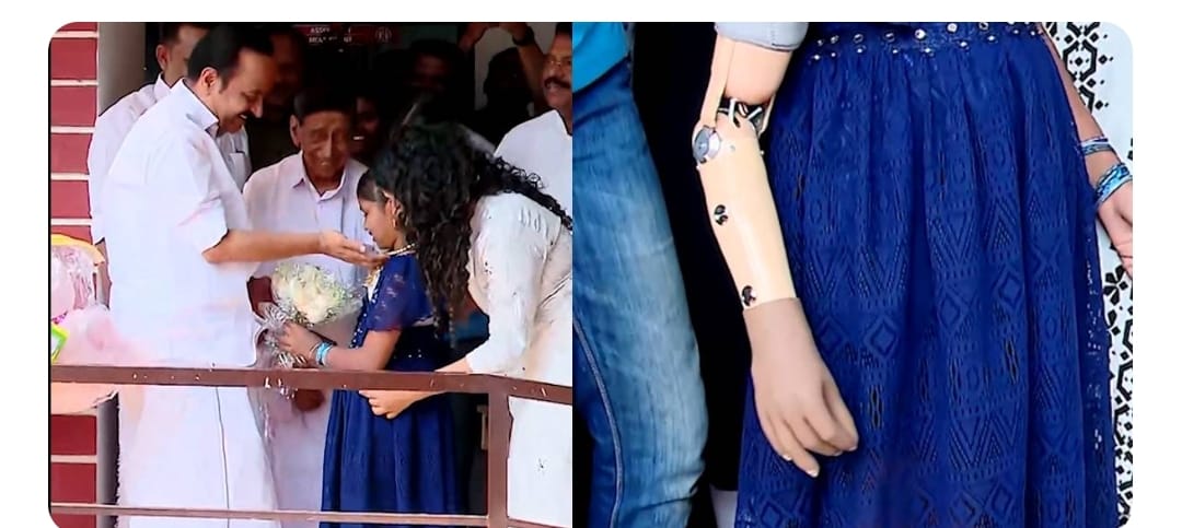 നിറപുഞ്ചിരിയോടെ വിനോദിനി ഇനി സ്‌കൂളിൽ പോകും; കൃത്രിമ കൈവെച്ചു, സഹായ ഹസ്തം നീട്ടിയത് പ്രതിപക്ഷ നേതാവ്