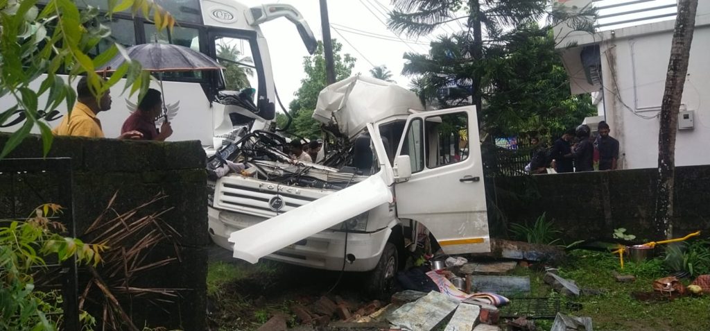 വടക്കഞ്ചേരി മുടപ്പല്ലൂർ കരിപ്പാലിയിൽ ട്രാവലറും ബസും കൂടിയിടിച്ച് ഒരാൾ മരിച്ചു. ഫയർ ഫോഴ്സും പോലീസും നാട്ടുകാരും വാഹനത്തിൽ നിന്നും ആളുകളെ രക്ഷിക്കുന്ന പ്രവർത്തനം നടന്നു കൊണ്ടിരിക്കുന്നു. നിരവധി ആളുകൾക്ക് പരിക്ക് .