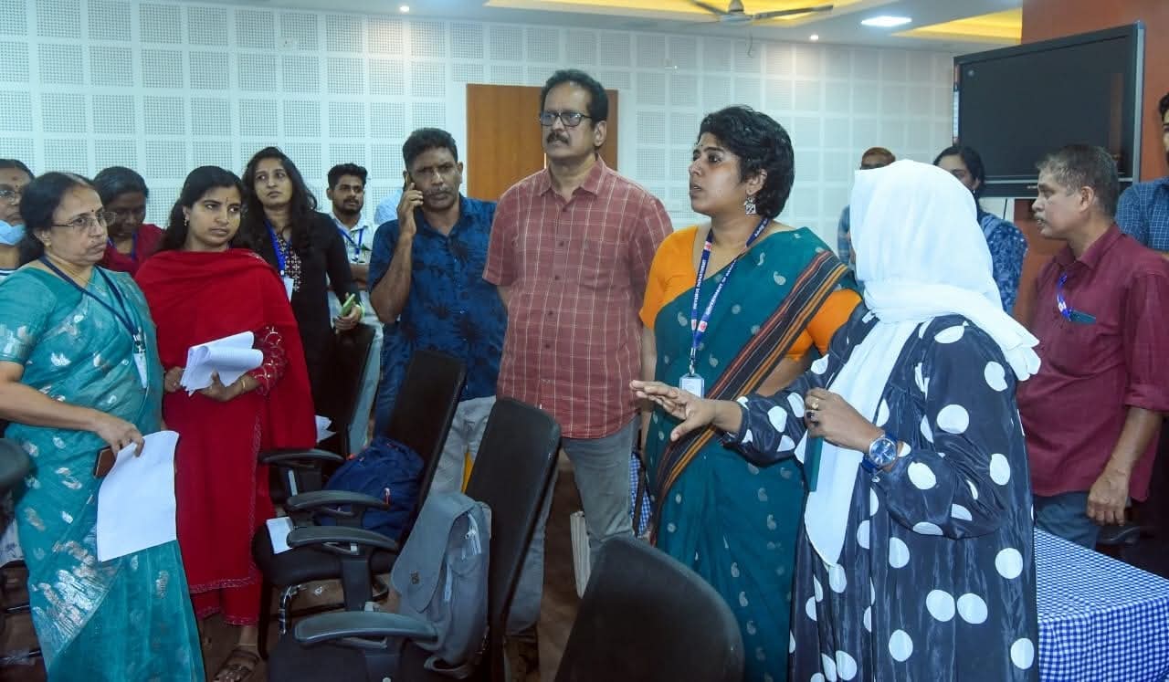 തിരഞ്ഞെടുപ്പ് വിഭാഗം ഡെപ്യൂട്ടി കളക്ടര് എസ്. സജീദ്, ജില്ലാ ഇന്ഫര്മാറ്റിക്സ് ഓഫീസര് പി. സുരേഷ്കുമാര്, മീഡിയ റിലേഷന് സമിതി കണ്വീനറും ജില്ലാ ഇന്ഫര്മേഷന് ഓഫീസറുമായ പ്രീയ കെ ഉണ്ണികൃഷ്ണന്, തിരഞ്ഞെടുപ്പ് ട്രെയിനിങ് നോഡല് ഓഫീസര് പി. മധു, ജില്ലാ തിരഞ്ഞെടുപ്പ് വിഭാഗം ഉദ്യോഗസ്ഥരായ പി.എ ടോംസ്, കിഷോര്, അസിസ്സ്റ്റന്റ് എഡിറ്റര് എം.പി അബ്ദുറഹ്മാന് ഹനീഫ്, അസിസ്റ്റന് ഇന്ഫര്മേഷന് ഓഫീസര് നീര്ജ ജേക്കബ് എന്നിവരും കളക്ടറെ അനുഗമിച്ചു.